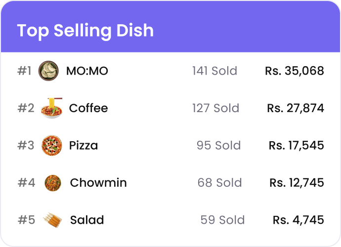 - Track revenue, order volume, live sales reports, and best-selling items in real-time.